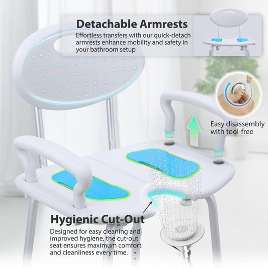 KosmoCare RX122 Crest Series Shower Bench With Backrest & Amrest