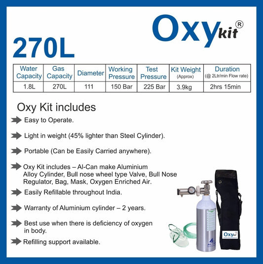 Oxykit 270L Portable Oxygen Cylinder Kit | Aluminium Medical O2 Empty Kit