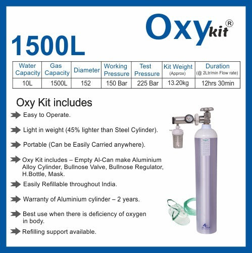 Oxykit 1500L Portable Oxygen Cylinder Kit | Aluminium Medical O2 Empty Kit