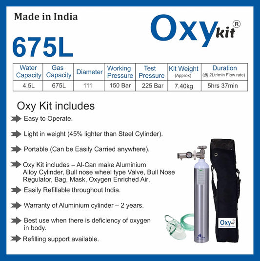 Oxykit 675L Portable Oxygen Cylinder Kit | Aluminium Medical O2 Empty Kit