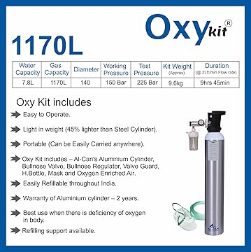 Oxykit 1170L Portable Oxygen Cylinder Kit | Aluminium Medical O2 Empty Kit