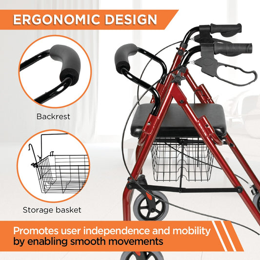 Karma RT60 Foldable Rollator Walker (Aluminium) With Seat & Basket