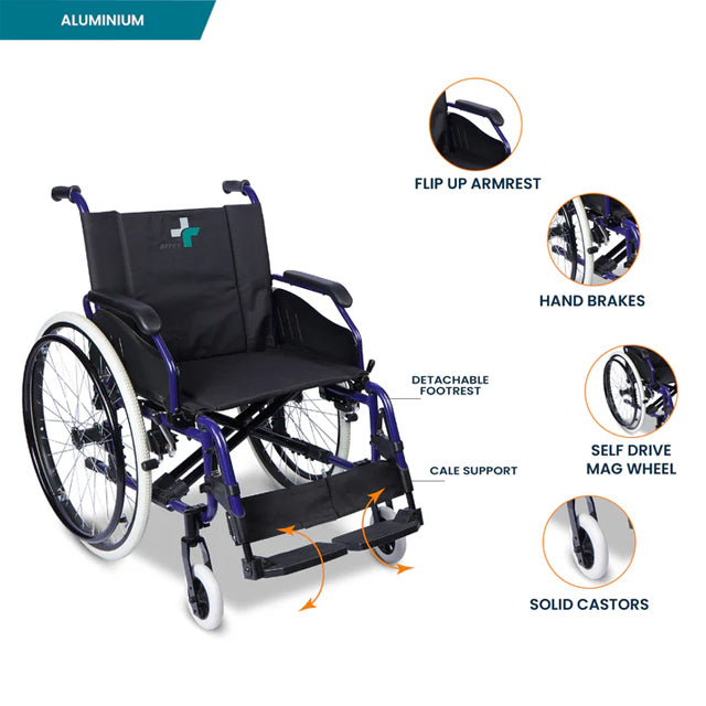 - Self-drive mag wheels enhance user autonomy and mobility, providing a self-propulsion option for greater independence.