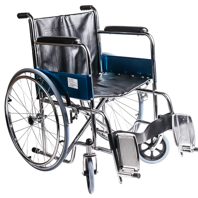 - The wheelchair is equipped with self-drive wheels, allowing users to independently propel themselves.