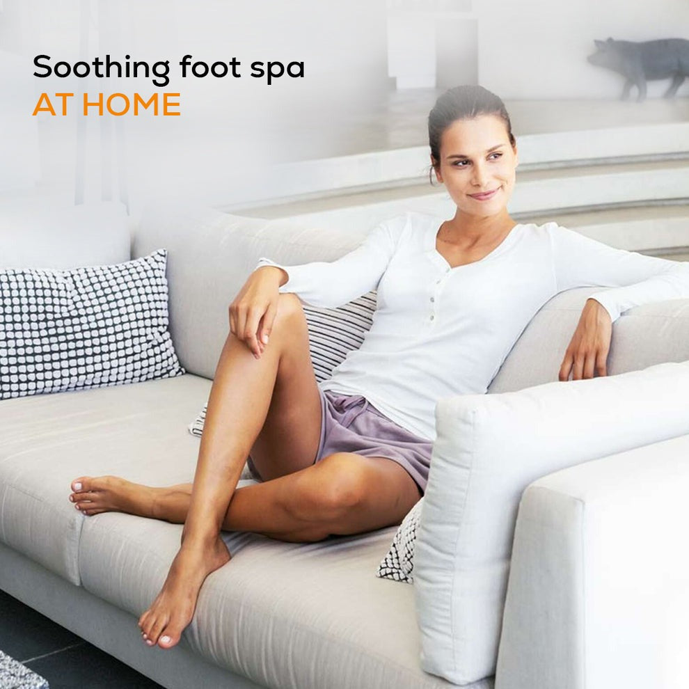 This foot spa is designed to perform several functions like maintaining the water temperature, bubble massage and vibration massage. It has an integrated massage-supporting footbed. This spa can be suitable for individuals with a maximum shoe size of 50.