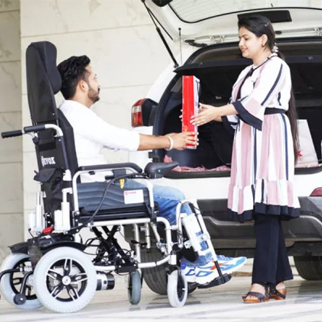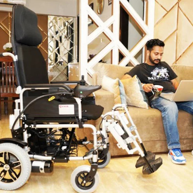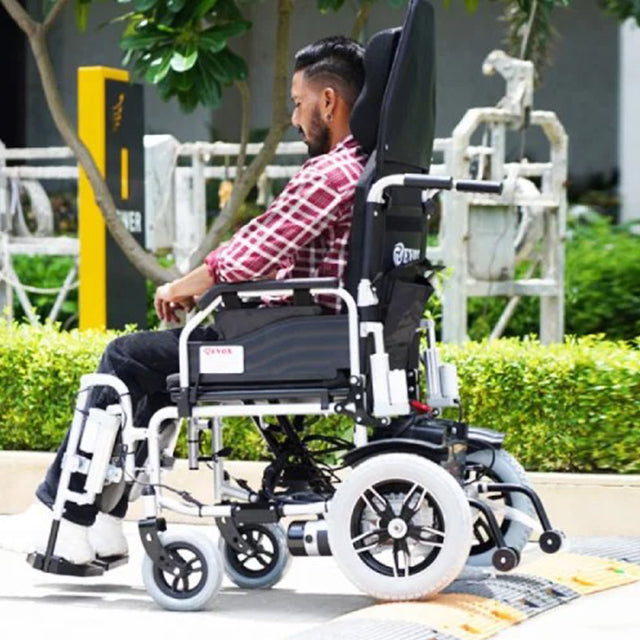 Introducing the EVOX WC 104R Reclining And Wireless Remote Wheelchair, designed to revolutionize your comfort and mobility. Immerse yourself in unparalleled relaxation with its ergonomic design, offering optimal lumbar support and a plush reclining feature. Experience a new level of comfort, ensuring long hours in your wheelchair are as enjoyable as they are functional.