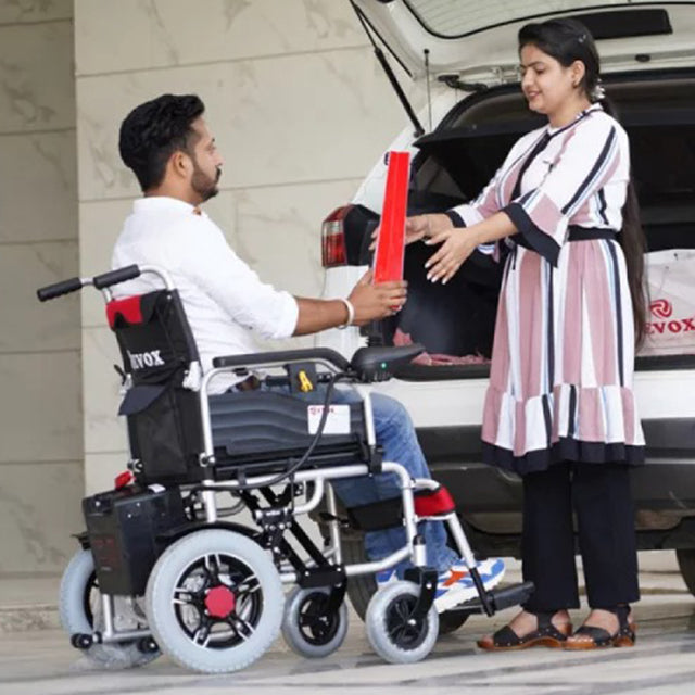 Embark on a journey of independence with the Evox Electric Folding Wheelchair WC 105-E, designed for seamless mobility. This innovative electric wheelchair boasts powerful motors and advanced navigation, ensuring you effortlessly navigate diverse terrains. From bustling city streets to scenic outdoor trails, embrace the freedom to go anywhere with ease.Unfold the wheelchair, and let its precision engineering and responsive controls take you on a smooth ride. Whether you're a seasoned traveler or simply running errands, the WC 105-E promises an unmatched mobility experience. Break free from limitations and redefine your sense of adventure.