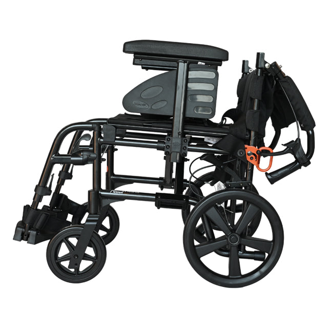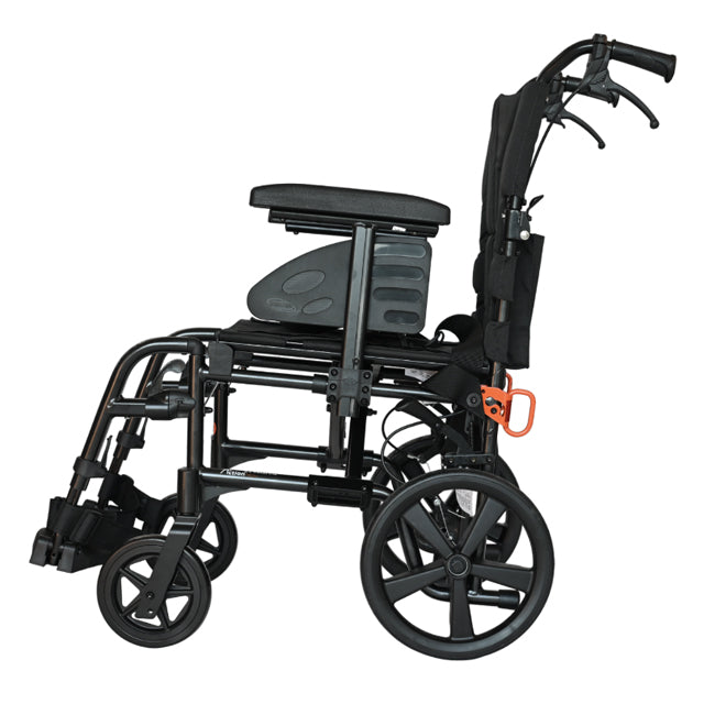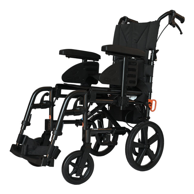 The Action 2 NG Transit (Lite) embodies a premium, Attendant-Driven, exceptionally Lightweight, and Foldable Wheelchair, with an additional feature of a Dual Brake System, meticulously crafted from Aerospace-Grade Aluminium, ensuring top-notch quality. This medium active chair excels in functionality, comfort, and stability by incorporating lighter components to optimize maneuverability. Crafted with Reliability in mind, it includes a wide array of accessories designed to accommodate diverse Clinical Requirements, making it an excellent choice for daily use.
