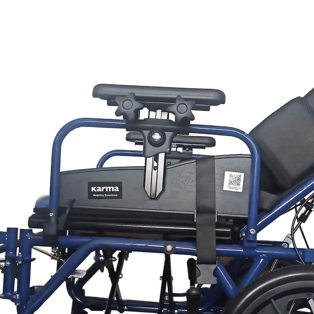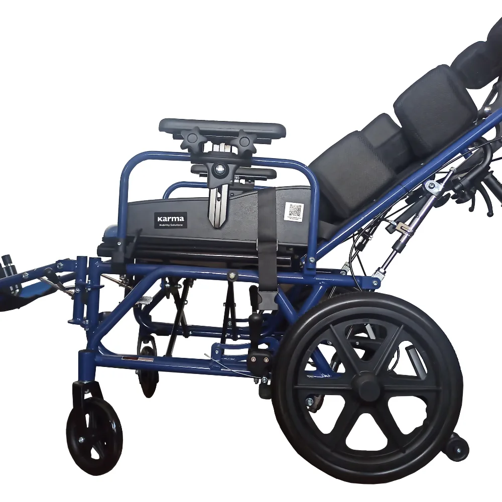 Recline system provides user with the most comfortable resting environment. It also allows stretching of the abdominal muscles which can reduce stress and discomfort after sitting in a wheelchair for long periods of time.