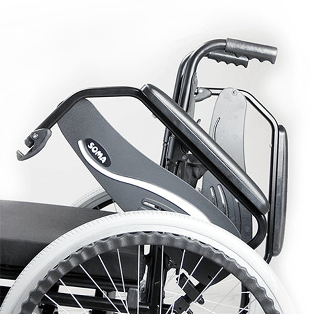 The flip-back feature makes it easy to get on and off the wheelchair or roll closer to a table or desk.
