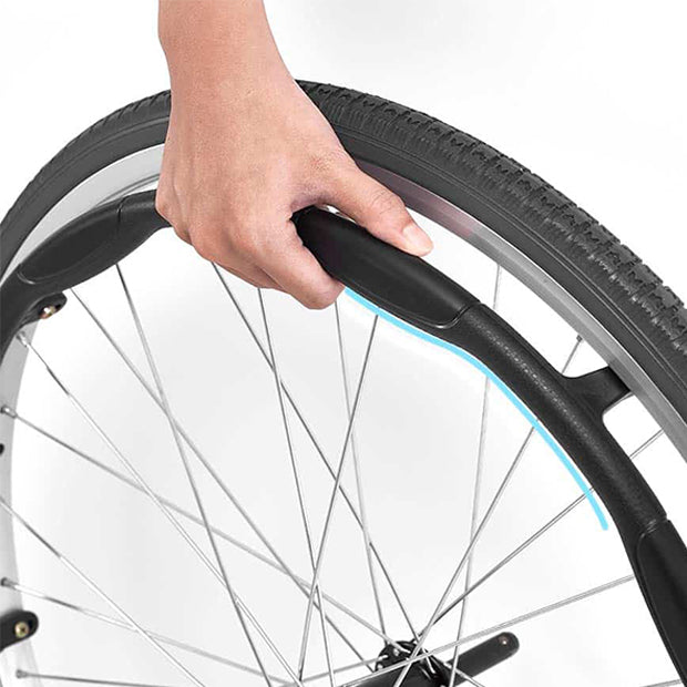 The new ergonomic hand-rims provide comfort and greater mobility for better propulsion and efficient braking.
