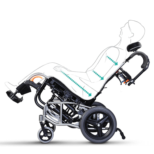 The Tilt-in-Space system allows the wheelchair user to change position throughout the day, which will redistribute and relieve pressure.