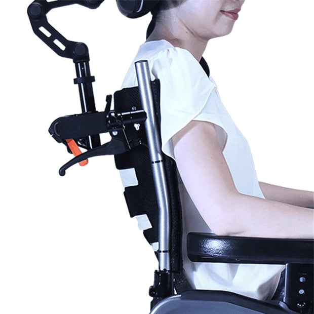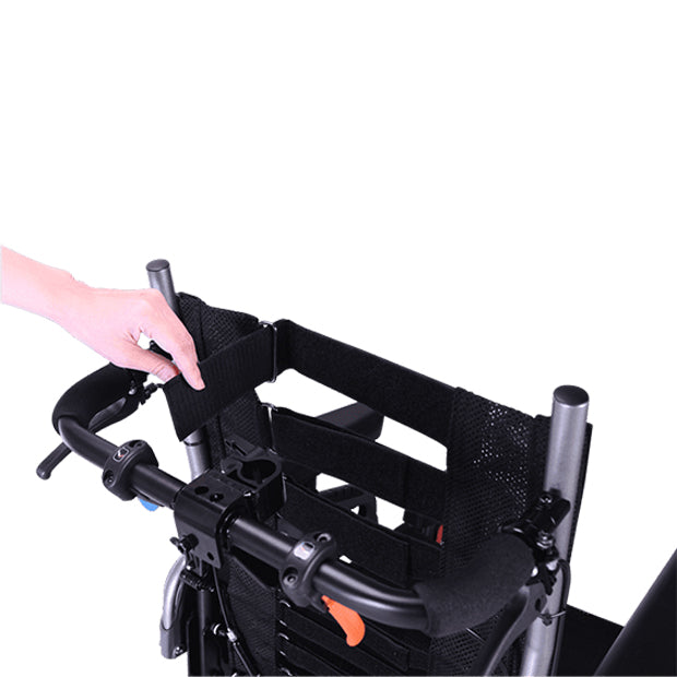 Unlike conventional wheelchairs, the backrest uses adjustable velcro straps to change the tension and conform according to the wheelchair user. This helps prevent slouching and the hammock effect.