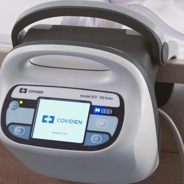 The Kendall SCD™ 700 Smart Compression™ Controller delivers compression to the leg, foot, or both to aid in the prevention of Venous Thromboembolism (VTE), including Deep Vein Thrombosis (DVT) and Pulmonary Embolism (PE) in the at-risk patient1,2. It includes a flexible and transportable design, animated alerts with resolution prompts for any error, low noise, ease of cleaning, and a large LCD screen for visibility. As part of the Kendall SCD™ 700 Smart Compression™ system, the Controller includes the following smart features: