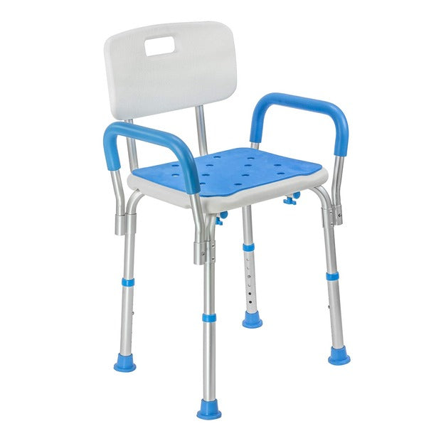 - COMFORTABLE PADDED SHOWER CHAIR: The large molded bath safety seat with EVA mat is comfortable & convenient. Furthermore, foam padded arms provide support & stability to get up and down from the bath seat. The arms are easily removable.