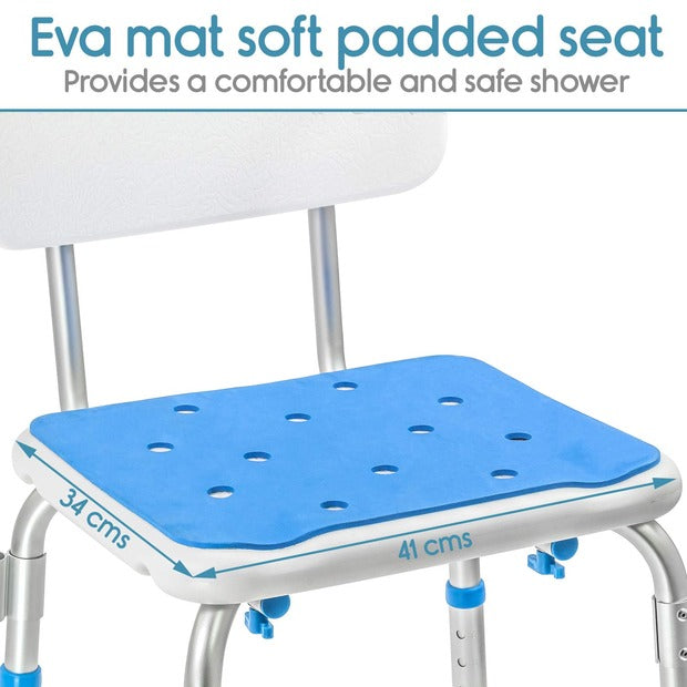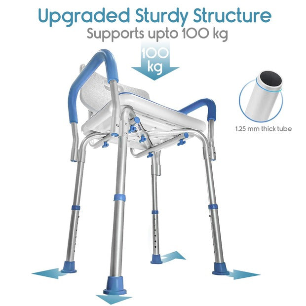 - DURABLE AND LIGHTWEIGHT: This shower chair is made from lightweight materials with high tensile strength, which makes it sturdy & heavy duty. The aluminium frame provides a high load-bearing capability up to 100 kgs.