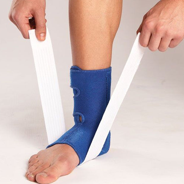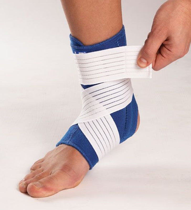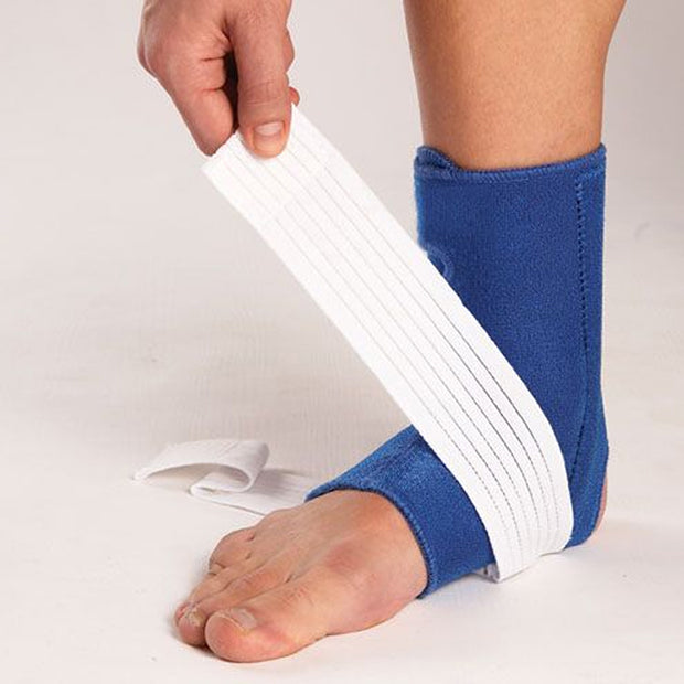 Flexible spiral stays provide stabilization for medial and lateral support. Removable surgical elastic strap offers additional compression to Talofibular ligaments.