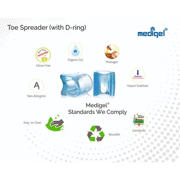 Hypoallergenic medical grade gel technologyReleases medical grade mineral oil lubricating soft skinStraighten & Align Toes by gentle constant pressure while spreading toesReducing friction between toes preventing infectionsOrganic and soothing impact helping softening of corns, calluses and blistersRelieve pain of overlapping toes / toe drift and painful bunionsLess Noticeable, nearly transparent and least abrasiveEasy to clean, don’t absorb odor and long lasting thicker than separators.