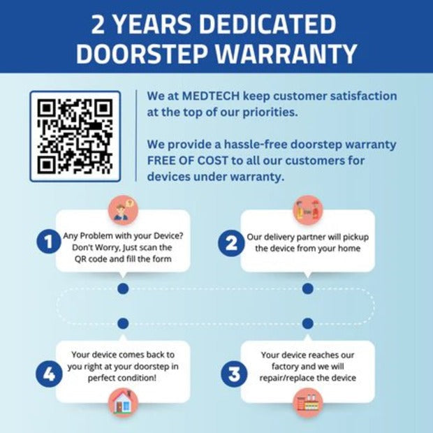 The Medtech Nebulizer has a powerful piston compressor that is meant for long time use and lasts long. The nebuliser is designed specifically to last long in Indian weather conditions.