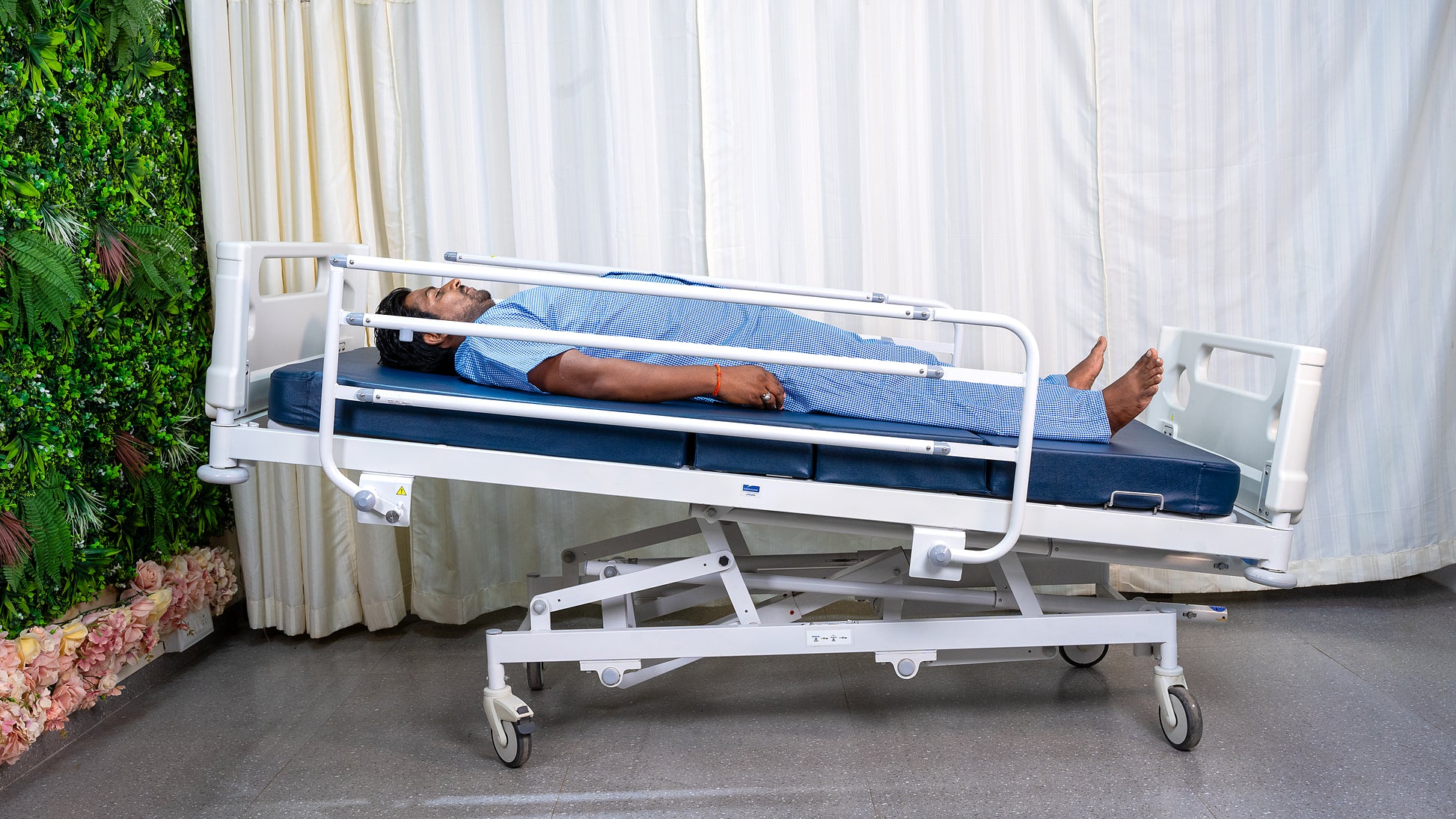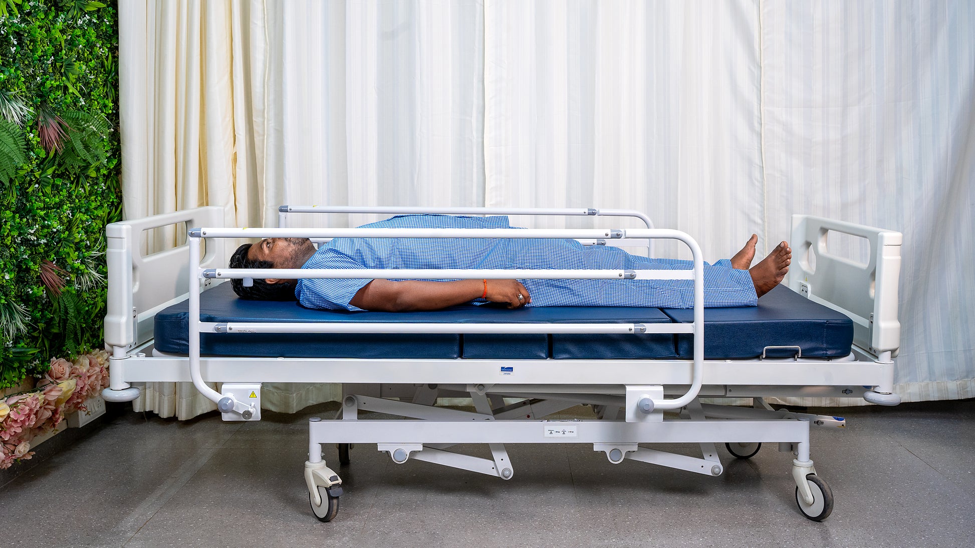 This adjustable manual hospital bed is designed to deliver Midmark India quality and safety at an affordable price, providing comfort to your patients and caregivers.