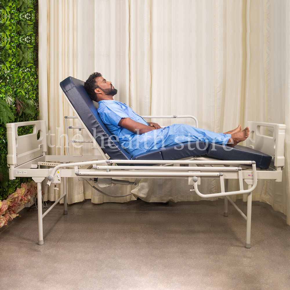 The BX4000 Motorised Fowler Bed has the facility to raise the Back & Leg sections which are operated by crank mechanism provided at the foot end of the bed. The raising section allows the nursing staff to change positions for various activities and clinical positions with relative ease.