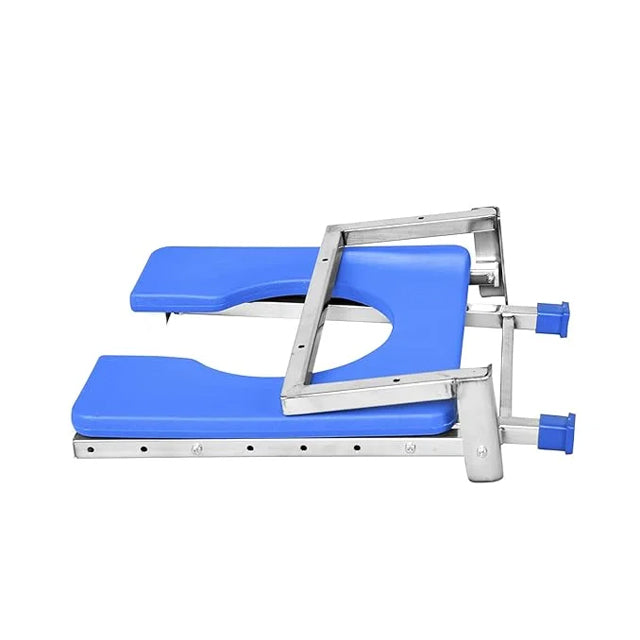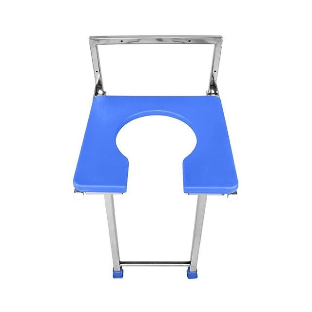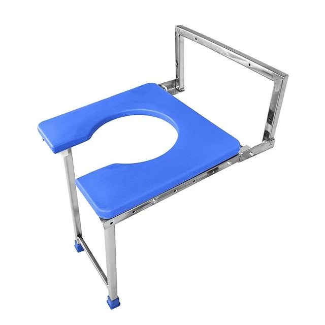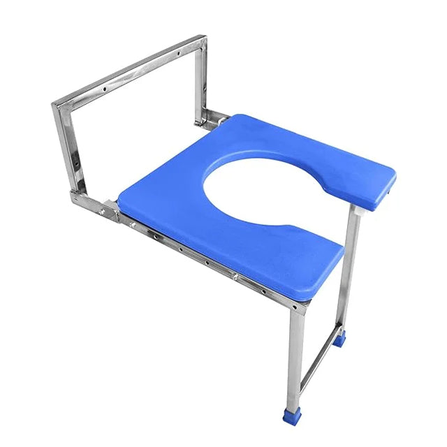 - STURDY 202-Stainless Steel Grade FRAME: The commode stool is constructed of 202-Grade Stainless Steel that is welded for strength, with a snap-on toilet seat and a lid made of tough plastic that is simple to clean. A non-skid rubber cap that can support up to 120 kg of weight is added to the tip of each leg for further stability.