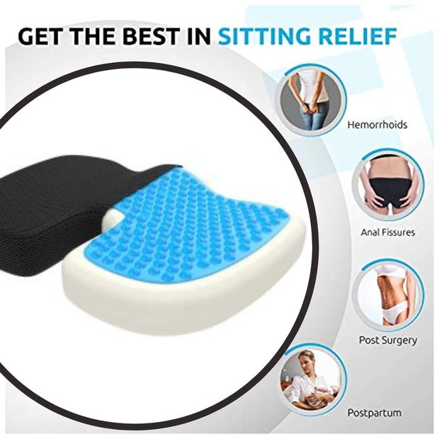 - Sit on the pillow so that your tailbone or coccyx area is positioned over the gel pad.