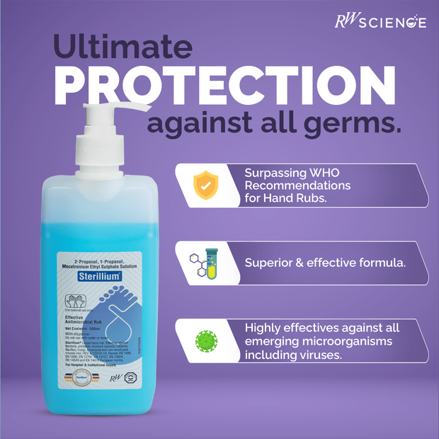 Awarded "Brand of the Century" thrice, globally acclaimed & most widely evaluated with more than 600 international publications. Recommended for hygienic hand disinfection, in between patients & procedures and surgical hand disinfection. Contains skin protectors and behaves like a chemical glove. Effective against all bacteria (MRSA), fungi, viruses including all variants of COVID.
