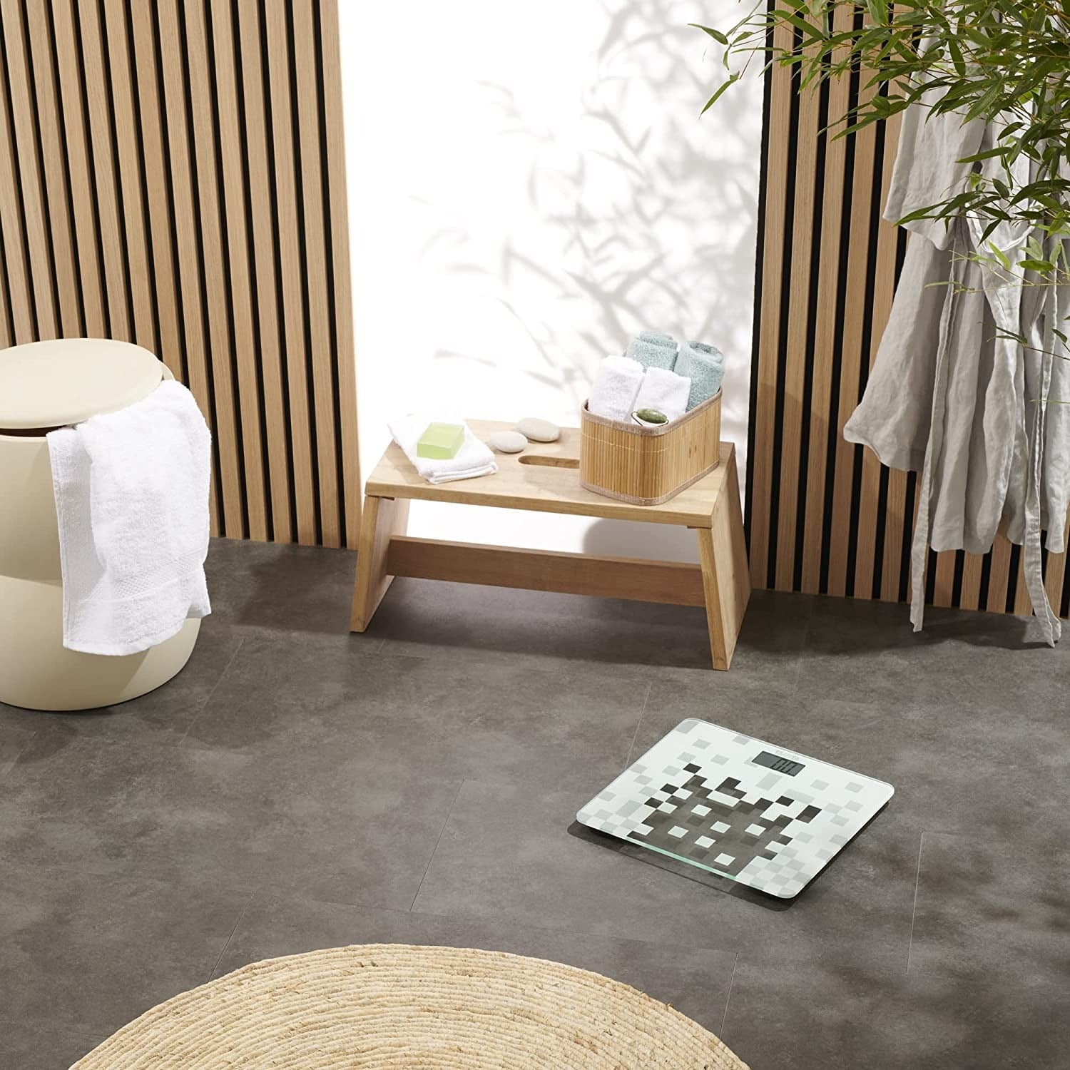 The TANITA HD-380 is a simple and straightforward digital scale. With its ultra-slim, all-glass design, it’s a stylish addition to any bathroom. The scale is available in black and white.