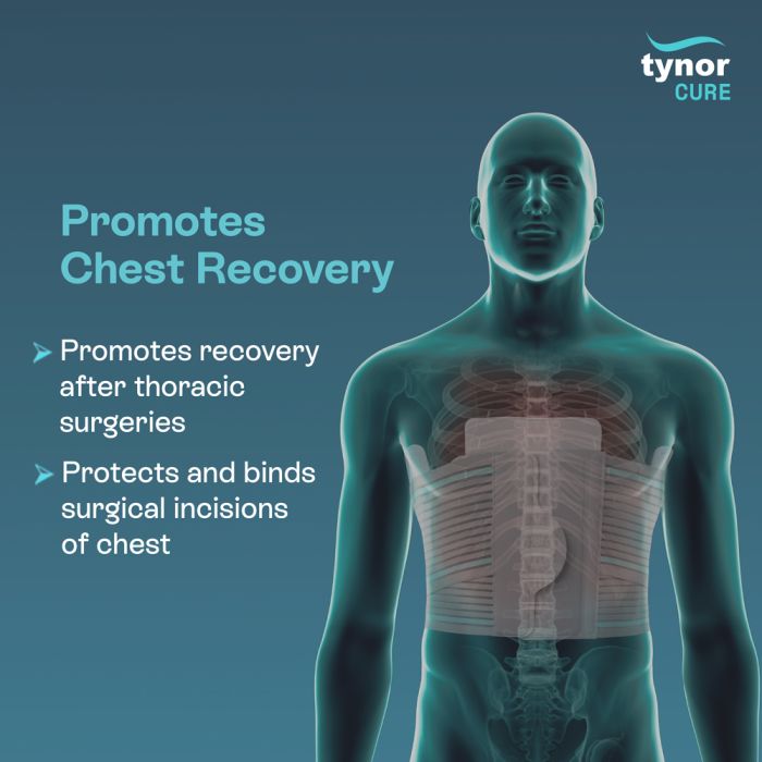 Ideal support to improve healing after thoracic surgeries. It is applied to the thoracic region to compress and bind the rib cage and provide splinting to the sternum. It is made from stretchable materials to allow sufficient flexibility for comfortable breathing.
