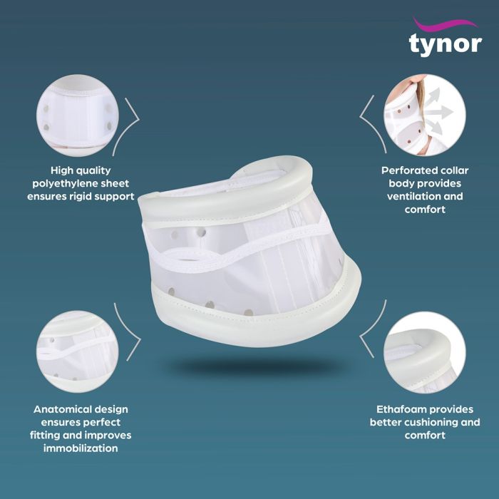 Designed to support and immobilize the neck. It helps to prevent unnecessary neck movement and provides stability to the head and neck. It is recommended where significant immobilization of the cervical region is required.