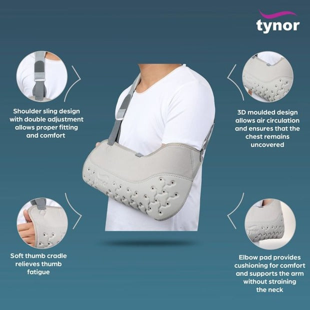 Designed for people who want to flaunt a sling as an accessory. It holds, supports and immobilizes the sprained, broken or surgically operated arm in flexion, while it recuperates. A chic, sleek and air-ventilated design suits tropical conditions.