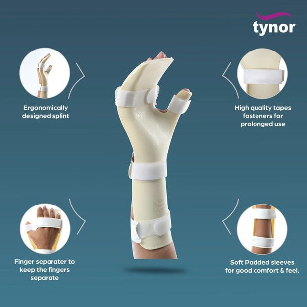 Designed to reduce pain and swelling by providing comfortable support and immobilization in the natural position to joints of the hand and the wrist. It reduces irritation of nerves in the carpal tunnel by supporting and resting the wrist in the "loose pack" position. It maintains the length of soft tissues thus preventing contractures.