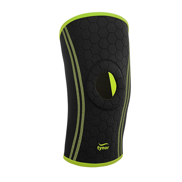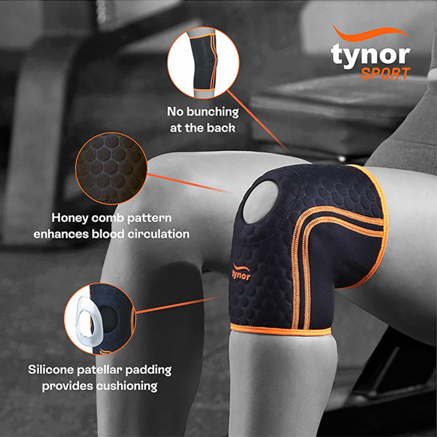 Compression sleeve to hold and compress knee muscles, to enhance the performance of players by increasing muscle density and blood circulation around the knee during sports, gyming and training. It also provides strong support and protection to ligaments and tendons thereby reduces the chances of wear and tear during workouts. The anatomical patellar ring holds patella in place.