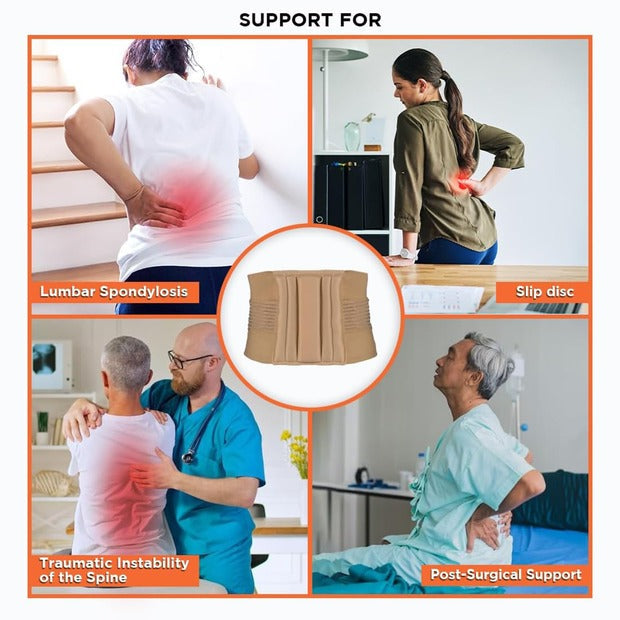 This Vissco lower back support belt can be used for acute lower back pain, slip disc, disc herniation, lumbar spondylosis, muscle weakness in the lumbar spine and other conditions causing pain and discomfort in the lower back and requiring mild support.