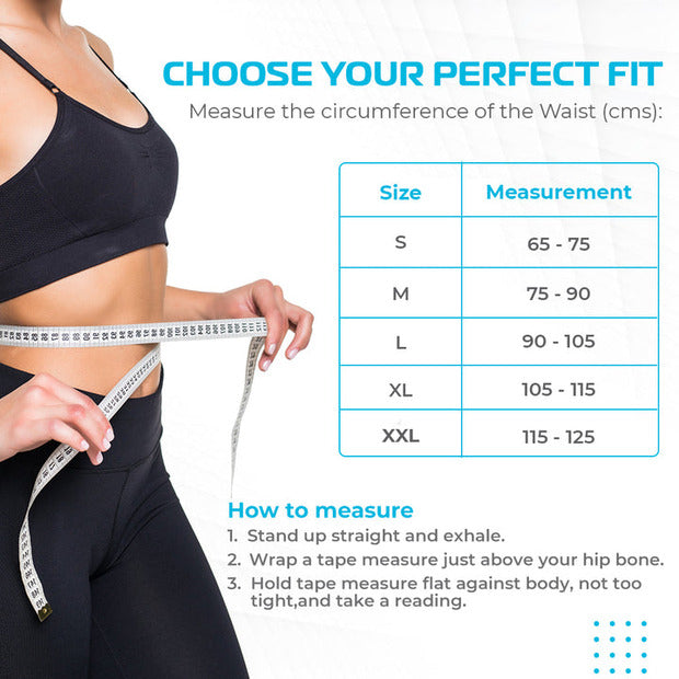 Keep the frame on the lower back and stretch the ends from both sides to lock around at the front side. Stretch the loop elastic straps around your body and attach velcro from the front giving a snug fit.