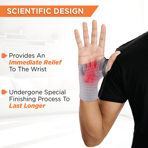 The wrist splint is made from Latex free durable, skin-friendly & breathable loop elastic material. This wrist band for pain products undergoes a special finishing process to make the material last longer & also has anti-bacterial properties.