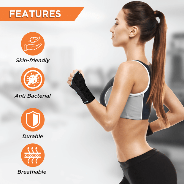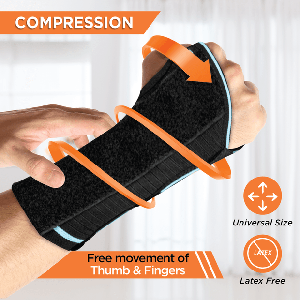 Insert affected hand through the support & wrap it around the wrist with the thumb placed in opening provided Ensure that the metal support is placed on palmar side of the wrist. Pull the straps to lock the support to a comfortable & secure fit