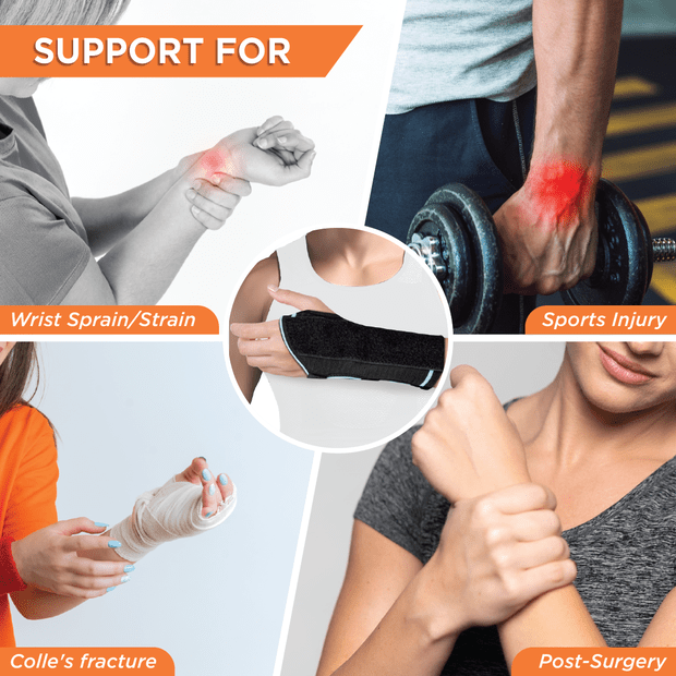 This wrist support can be used for an acute wrist injury, Colle’s fracture, Wrist Drop, Arthritis, Post-operative support and other conditions causing pain and discomfort in the wrist and requiring moderate to firm support.