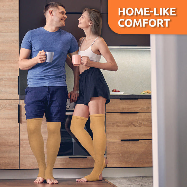 These Vissco varicose vein stockings can be used for post-pregnancy leg pain, pain due to varicose veins, weak and tired legs and other conditions causing pain and discomfort in the legs and requiring mild compression support.
