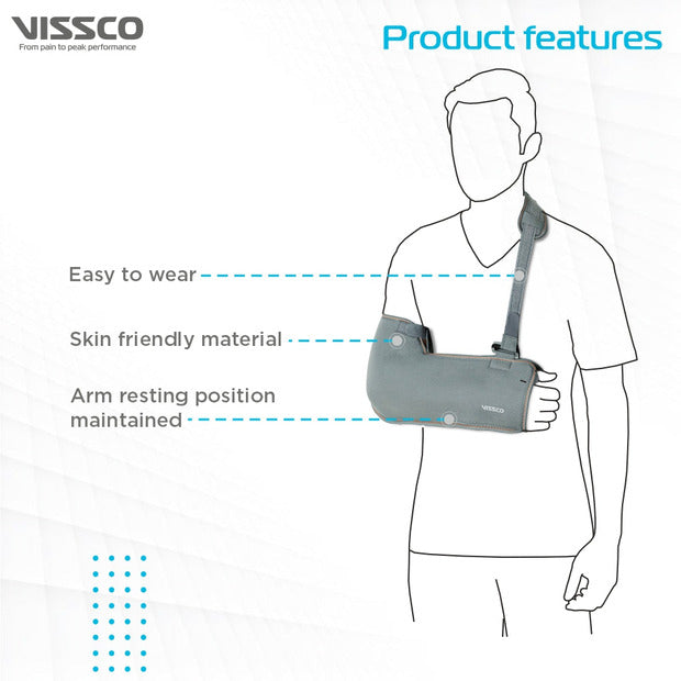 Scientifically designed to support the shoulder in resting position. Loop strap system for easy height adjustment. Thumb locking to maintain the arm in the resting position for immediate noticeable therapeutic relief.