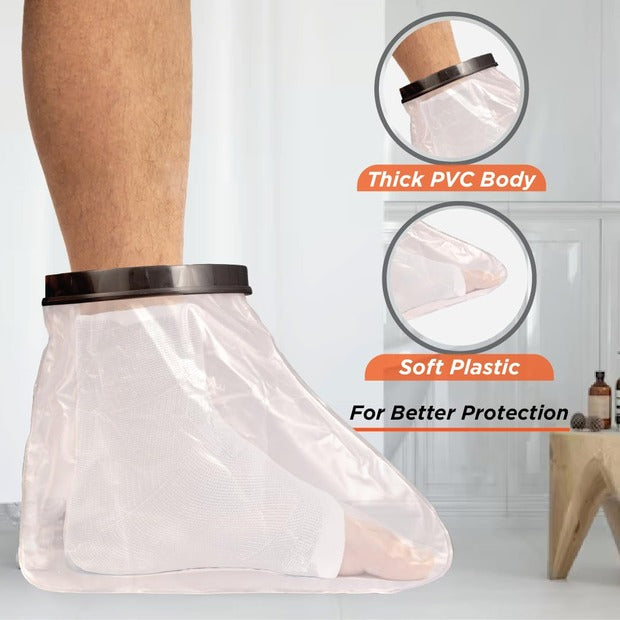 The leg cast cover protects the leg cast or bandages against water exposure during taking baths & in the rain. It can be used to protect open wounds caused due to Lacerations and burns. It is also used to protect the leg from ankle to knee and the skin in certain Dermatological conditions.