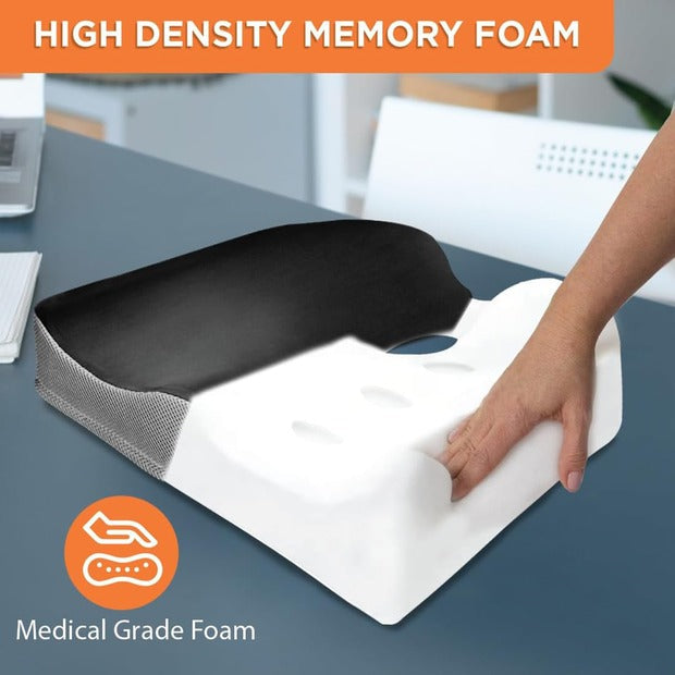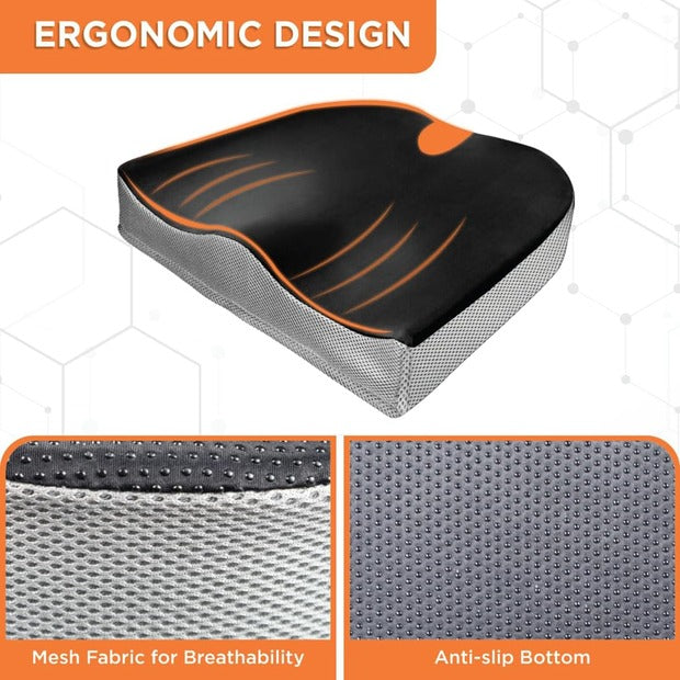 Ergonomic design, the high-density foam conforms to body shape, provides good cushion support and enhances comfort. The curved design of the coccyx seat cushion promotes a perfect sitting alignment. This allows the spine and the coccyx tailbone to be accurately aligned for weight distribution and promotes improved posture.