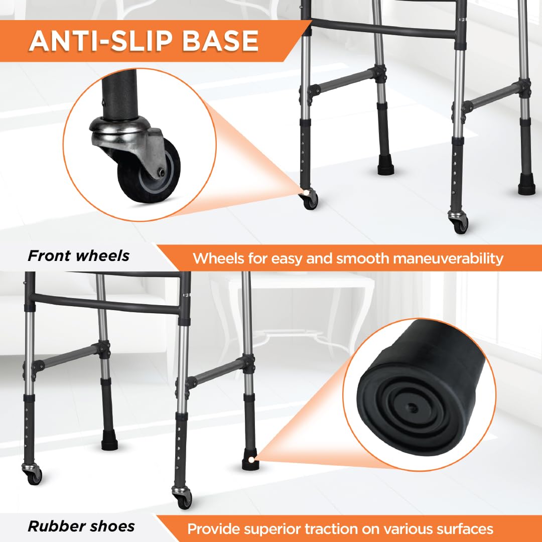 Sturdy Aluminum frame, high-grade rubber shoes and PVC grip ensures maximum strength while remaining lightweight