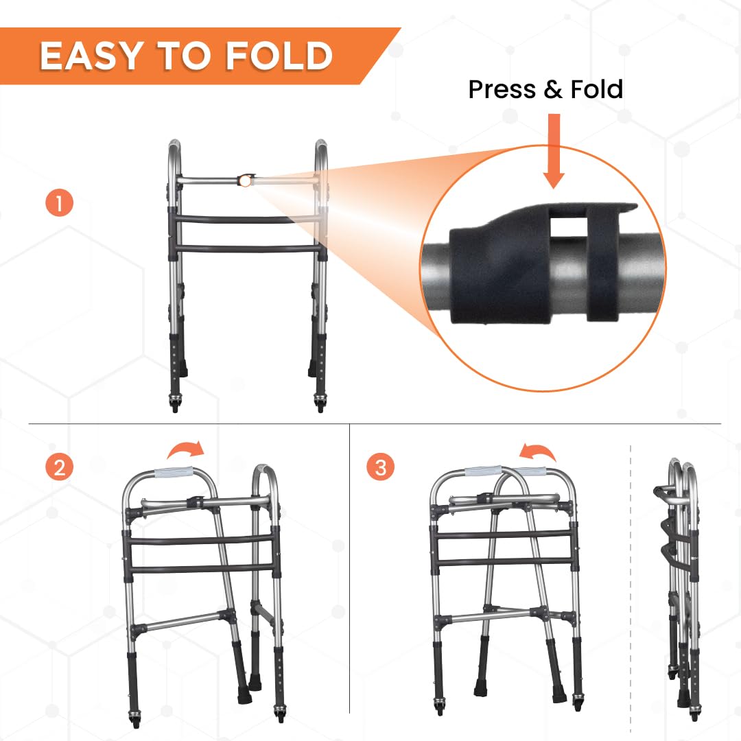 Easy push-button mechanisms can be operated very easily. Foldable for easy storage and transportation