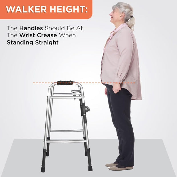 Can be adjusted to suit individual needs. Walker height can be adjusted from 77 cm to 88 cm from the ground to the walker hand grips