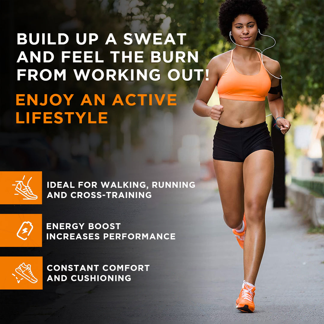 Durable EVA foam base and multi-layer cushion provide long-lasting support and comfort while walking, running and hiking. The fabric also helps keep your feet cool by sucking up all the sweat and moisture produced by your feet.