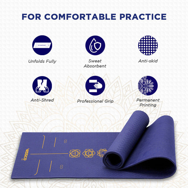 The beautiful alignment lines on the top surface helps you perform heavy Asanas & Surya Namaskar, all the while keeping your posture in check