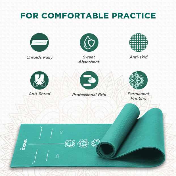 The beautiful alignment lines on the top surface helps you perform heavy Asanas & Surya Namaskar, all the while keeping your posture in check